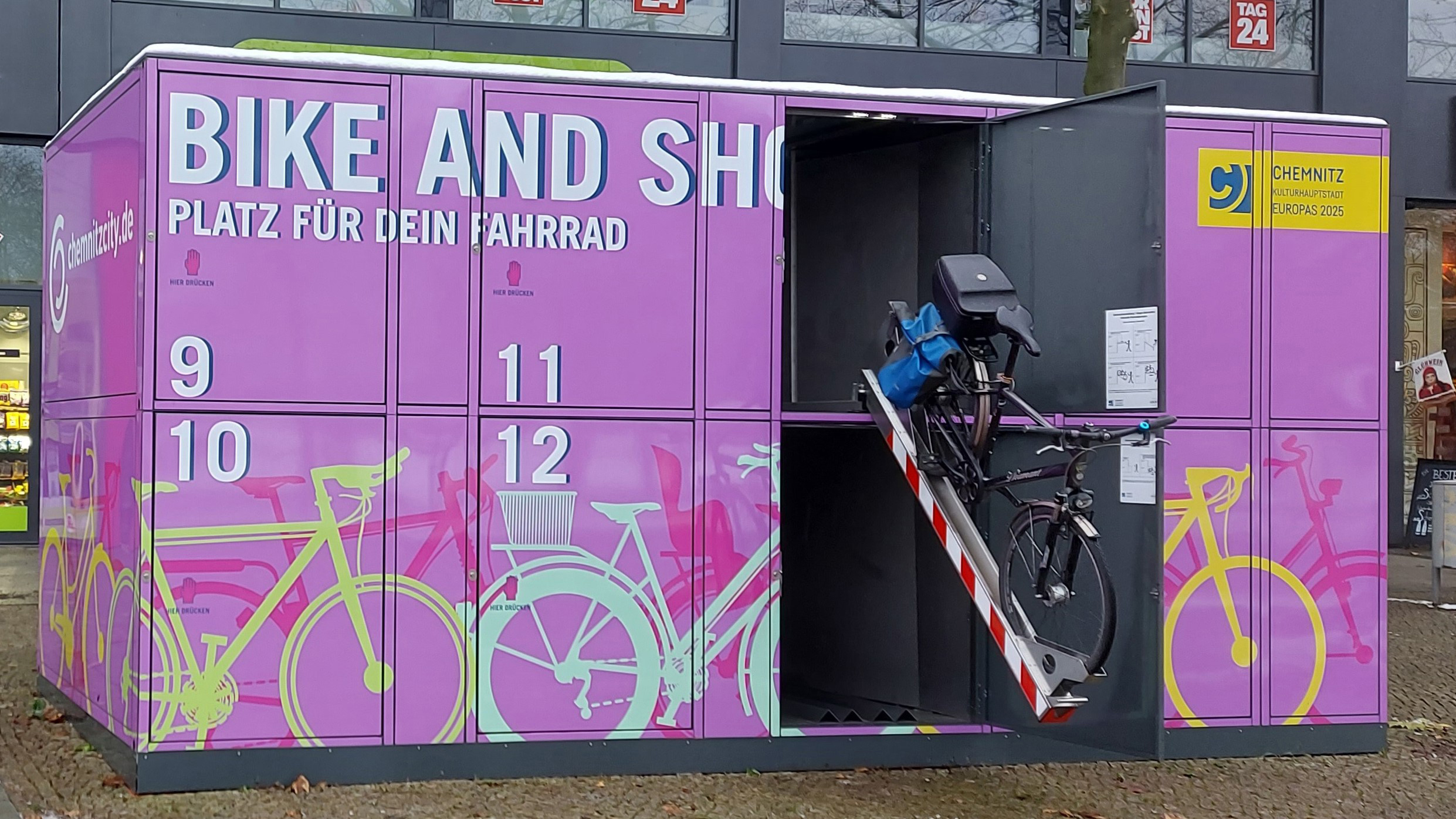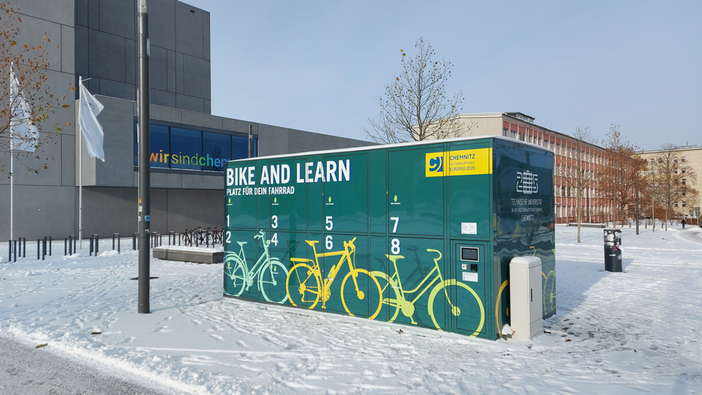 Drei neue, innovative Fahrradgaragen bieten sichere und wettergeschützte Abstellmöglichkeiten für Fahrräder. Die Velosafe mobil – Garagen sind nicht nur praktisch, sondern auch ästhetisch ansprechend gestaltet. Die drei Fahrradgaragen befinden sich an strategisch wichtigen Verkehrsknotenpunkten in Chemnitz: Am Hörsaalzentrum der TU Chemnitz, an der Straße der Nationen und direkt am Hauptbahnhof ermöglichen diese Fahrradboxen den Pendlerinnen und Pendlern ein bequemes und sicheres “BIKE AND RIDE”, „BIKE AND LEARN“ und „BIKE AND SHOP“. Sie ergänzen die konventionellen Fahrradbügel und Abstellanlagen und tragen dazu bei, den Radverkehr in Chemnitz noch attraktiver zu machen.